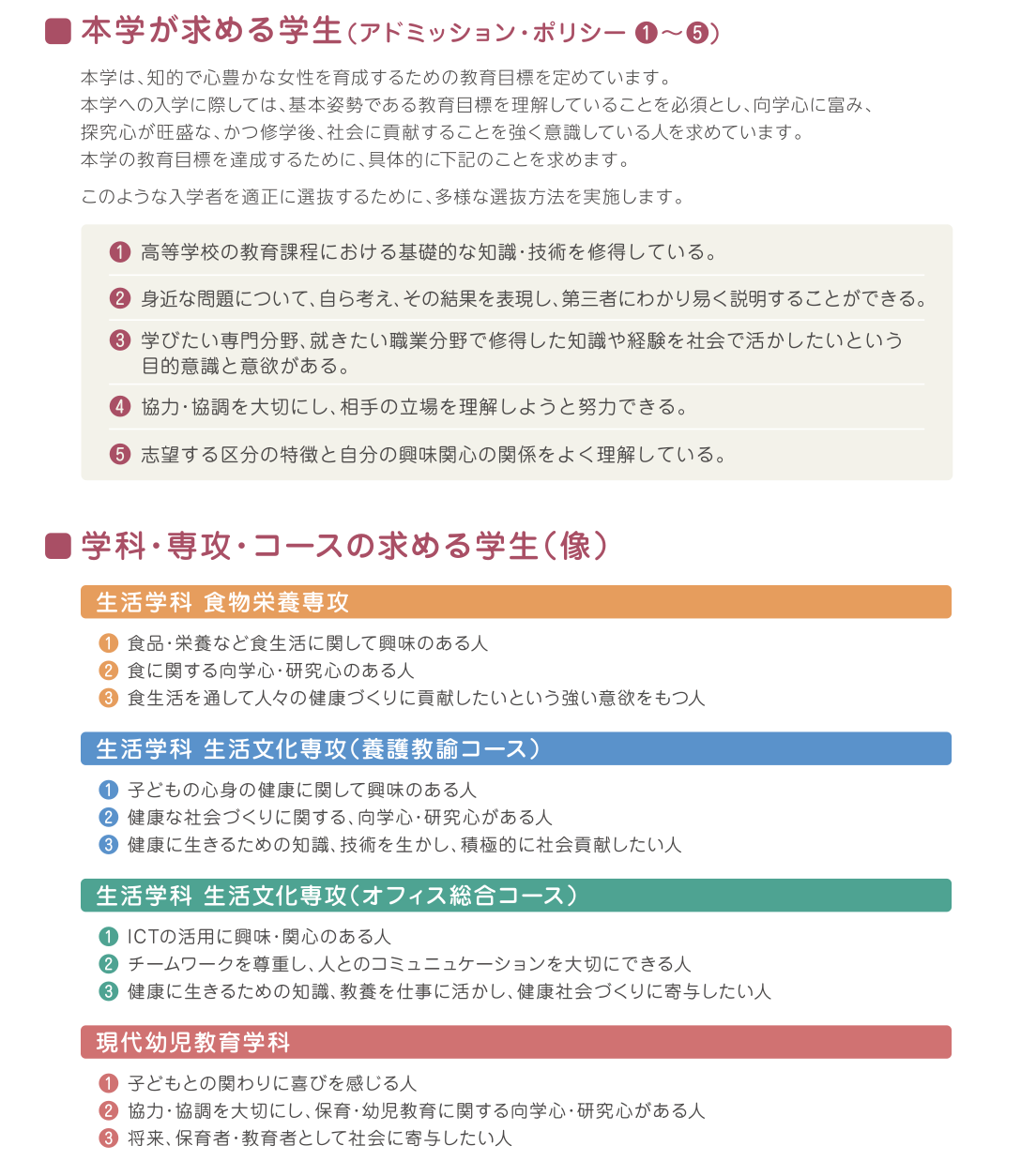 ③学びたい専門分野、就きたい職業分野で修得した知識や経験を社会で活かしたいという目的意識と意欲がある。