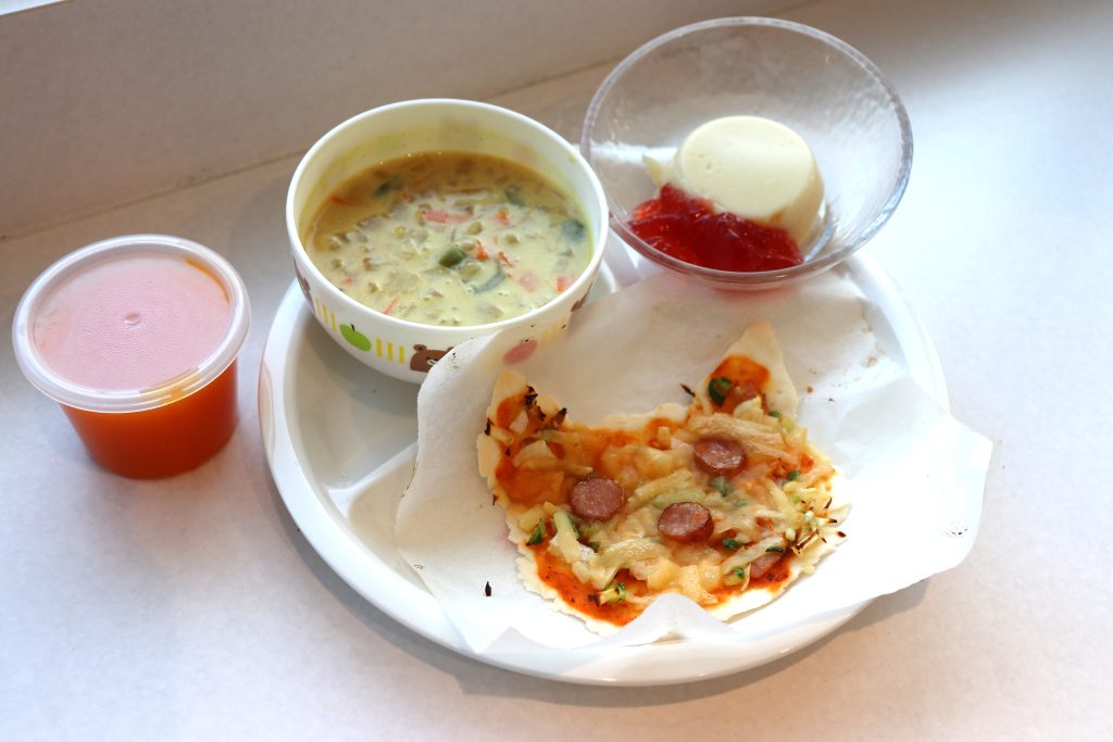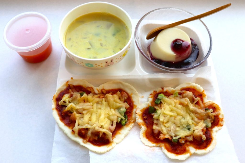 この日のメニューは、ブラマンジェ・ジャム・スープ・ピザの4品。アレルギーを持つ子でも食べられるよう、乳製品を大豆製品に、小麦粉を米粉に置き換えたレシピで作ります。そして、時間内にすべて完成させるには、グループのメンバー同士の協力が必須です!