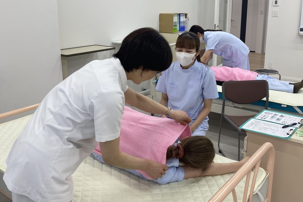 さまざまなけがや病気が起こる学校現場で、養護教諭には適切な判断と対応、悪化や予防に向けた保健指導が求められます。「学校救急看護Ⅰ」の授業では、そうした知識と技術を身につけ、実技演習を通じて現場で役立つ力を養っています。
