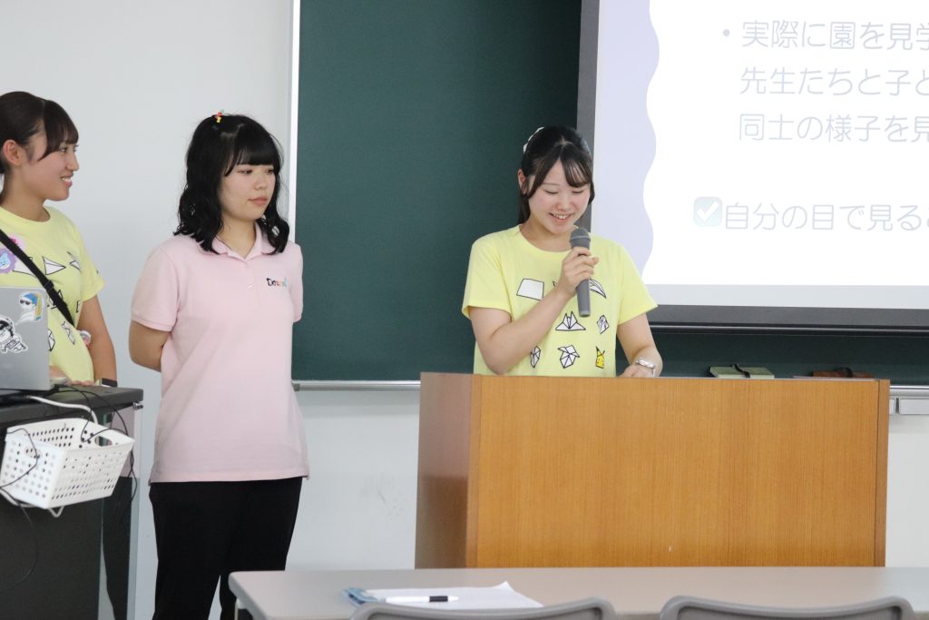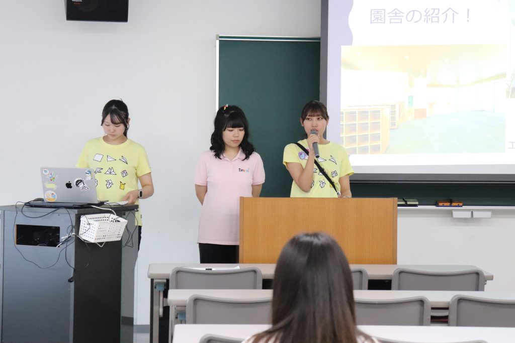 たからうらこども園・名古屋ドレミ幼稚園で幼稚園教諭として働く卒業生が、仕事内容や園での生活、楽しさなどを在学生に伝えるため来校してくれました!