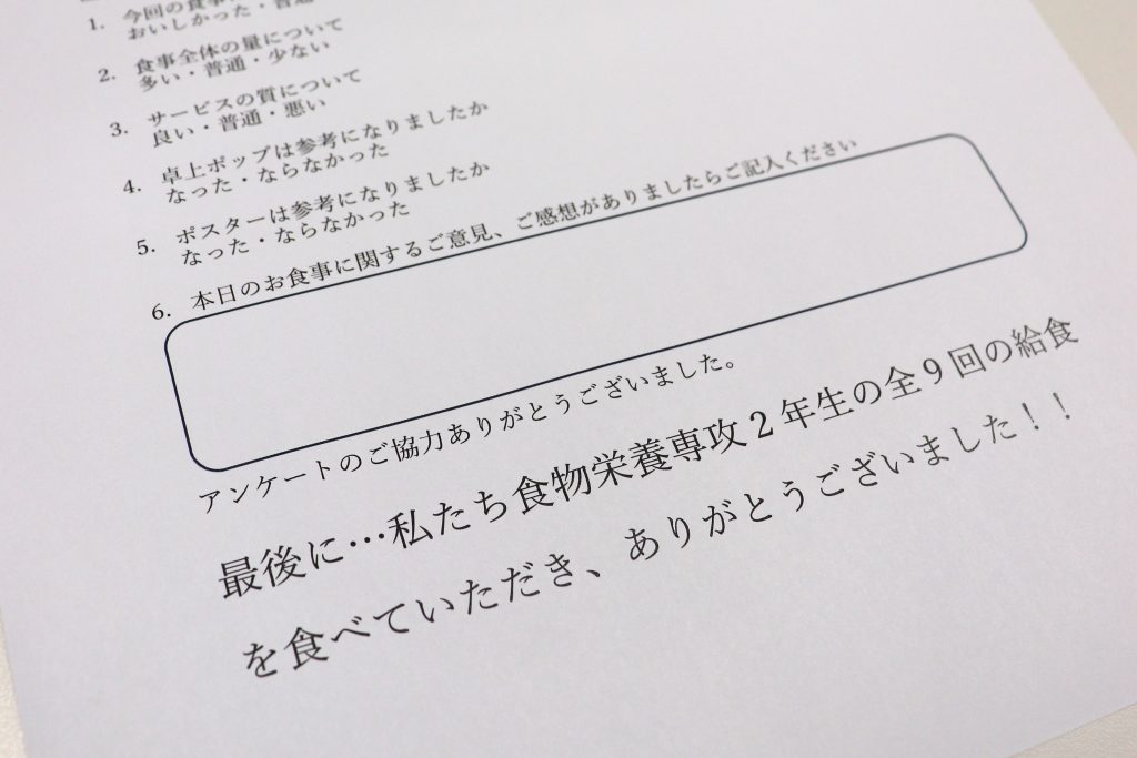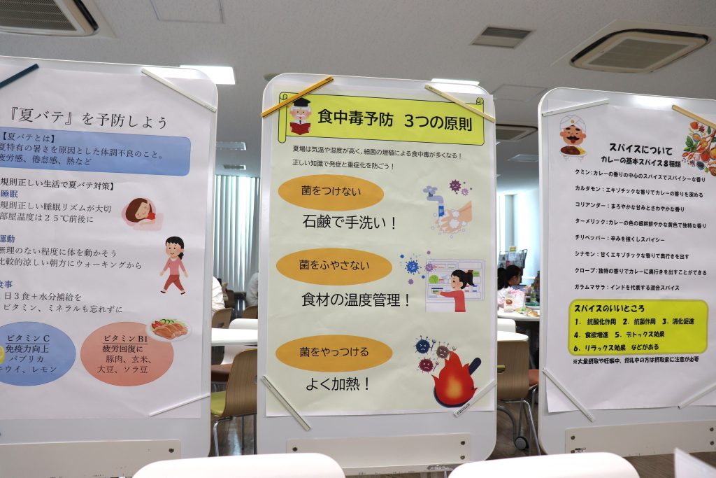 食事の提供だけでなく、片付け、食に関する豆知識が書かれた卓上ポップやポスターの制作、アンケートの用意も学生たちが行いました。