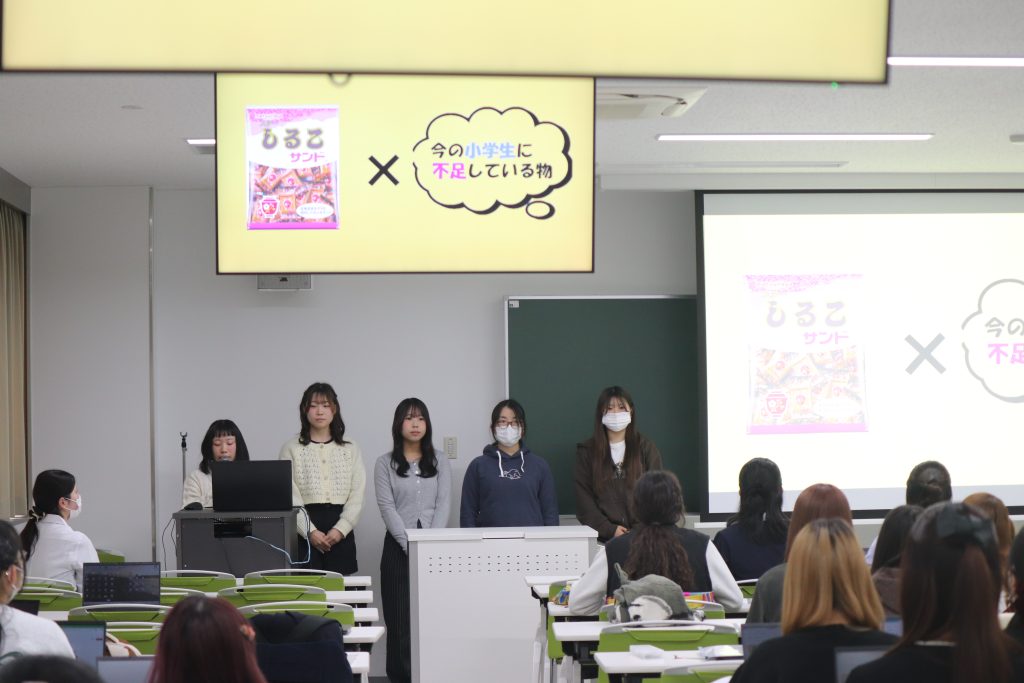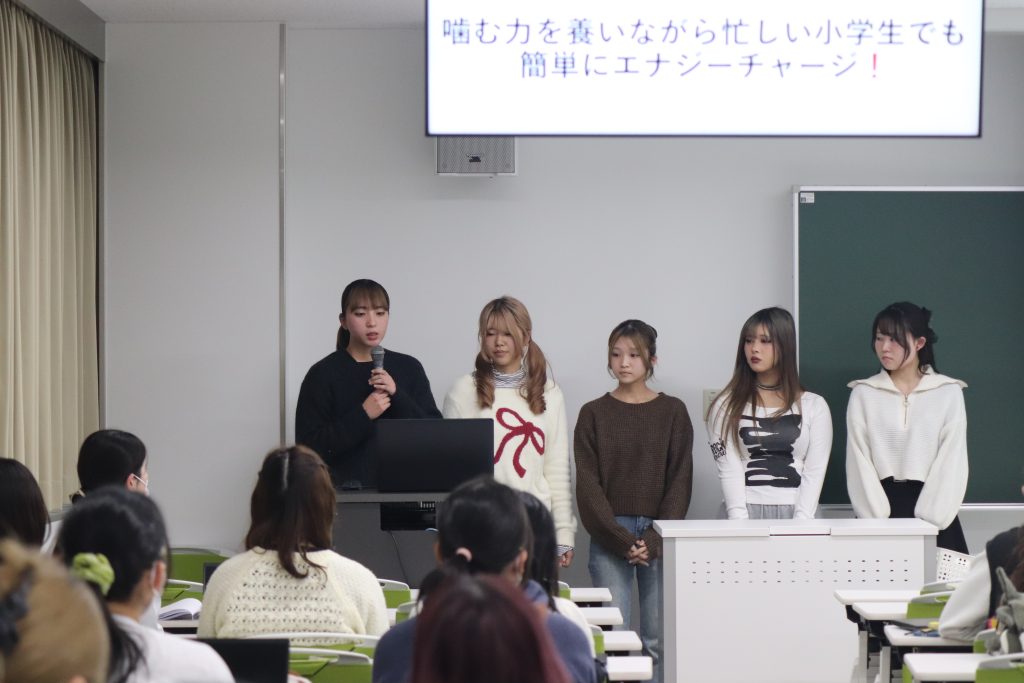 「実践栄養指導演習」にて実施している、松永製菓さんとの企画。二度の試作を経て、12月3日に最終プレゼンテーションを行いました。