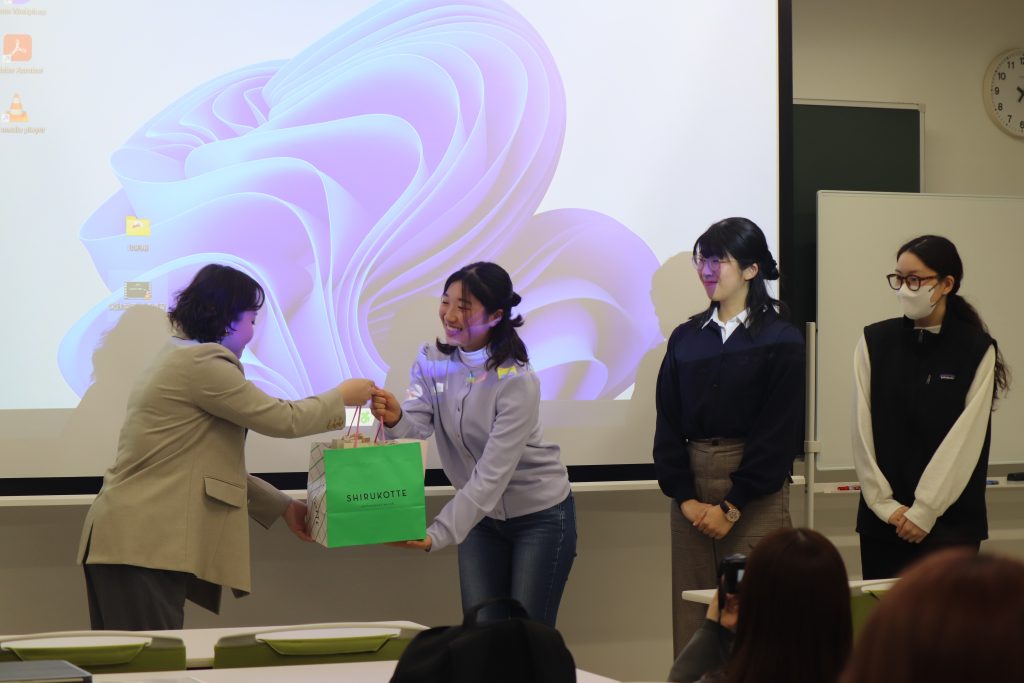 4班の提案には、基本五味の体験・食の多様性と組み合わせの面白さ・甘さの種類・野菜が甘くなる仕組みといった食育の要素がたくさん盛り込まれており、高く評価されました。受賞班には松永製菓さんの商品の贈呈も✨