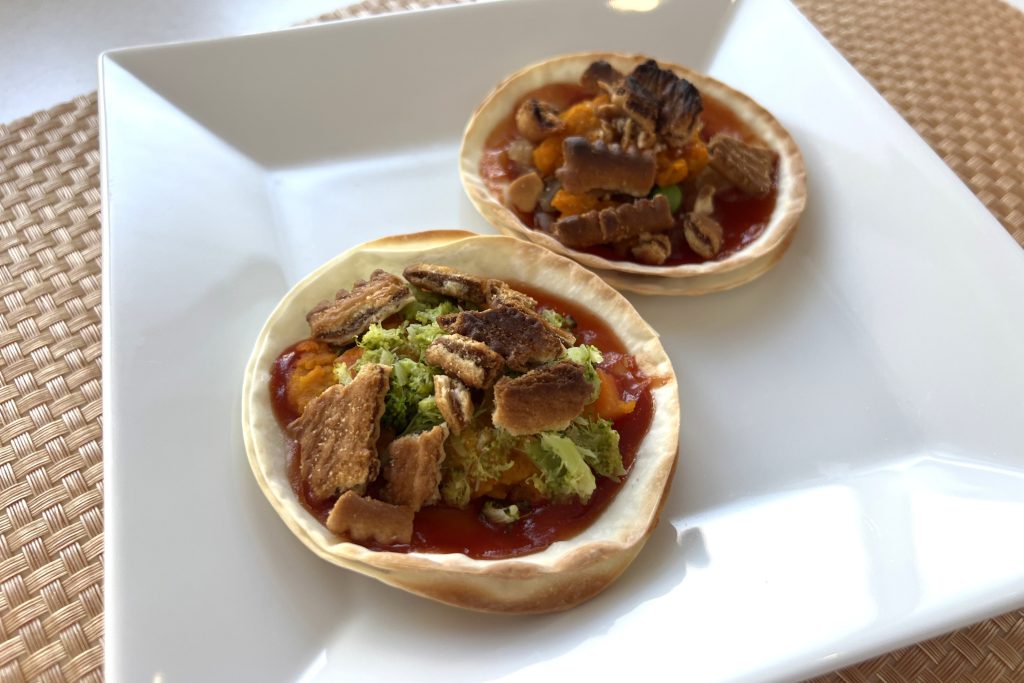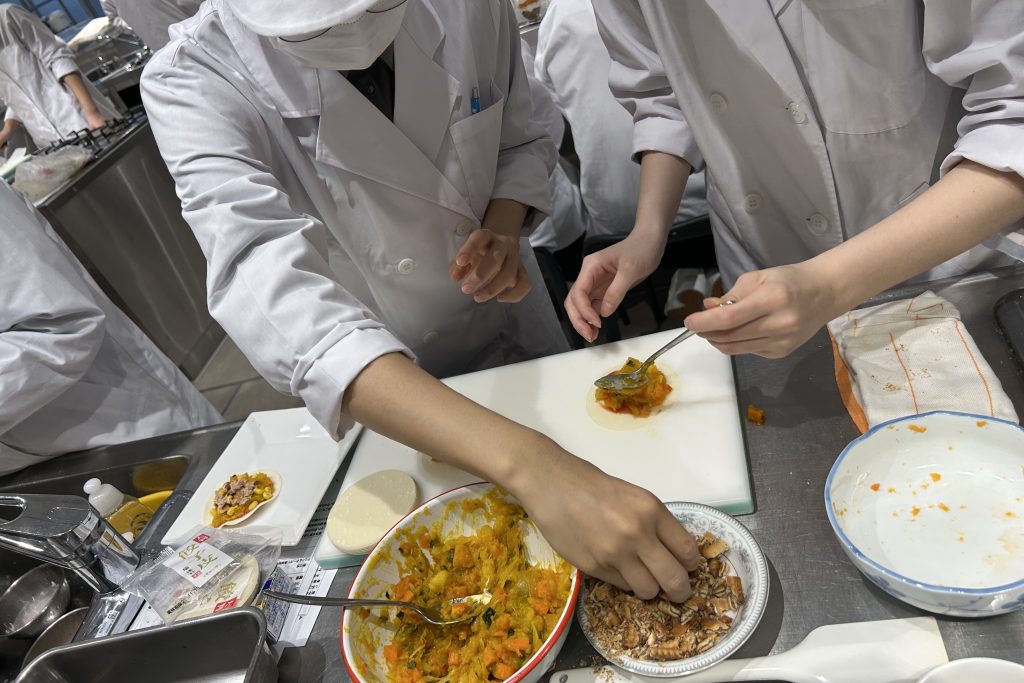 「5つの味のカラフルカナッペ」「ザクザク野菜ピザ」を考案した4班!