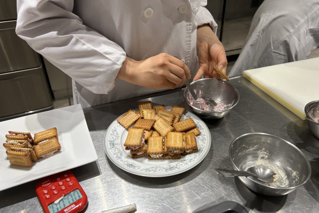 今回いただいた課題は、『しるこサンドを知る・「食」に興味を持ち、楽しんでもらうことを目的とした講座』の考案。各班が工夫を凝らしたアイデアを発表しました。