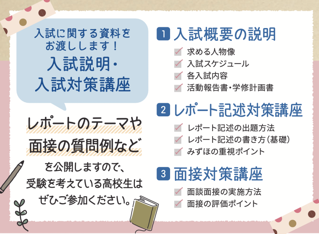 ※2027年度4月入学者向け総合型選抜(高大連携型)などの入試に関する説明も実施いたします。