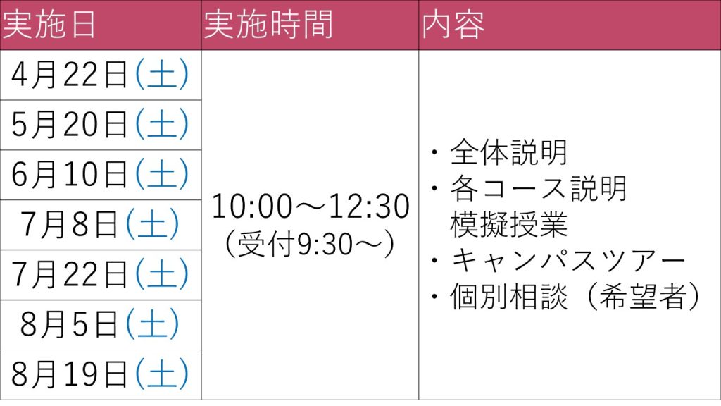 授業・学び・就職・学費・奨学金・入試・下宿など個別の相談がある方はぜひ個別相談にご参加ください。